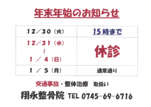 年末年始のお知らせ