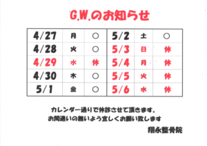 G.W.のお知らせ